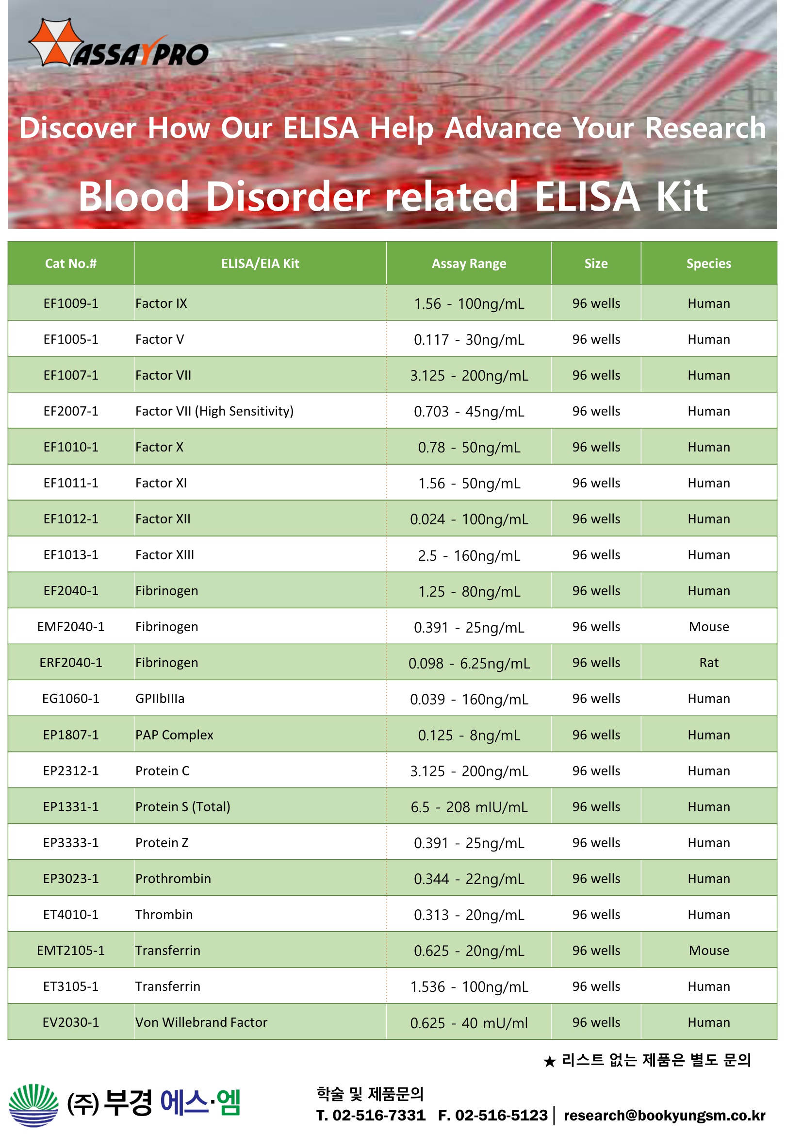 | Á¦¸ñ | [AssayPro] Blood Disorder related ELISA Kit | |||||