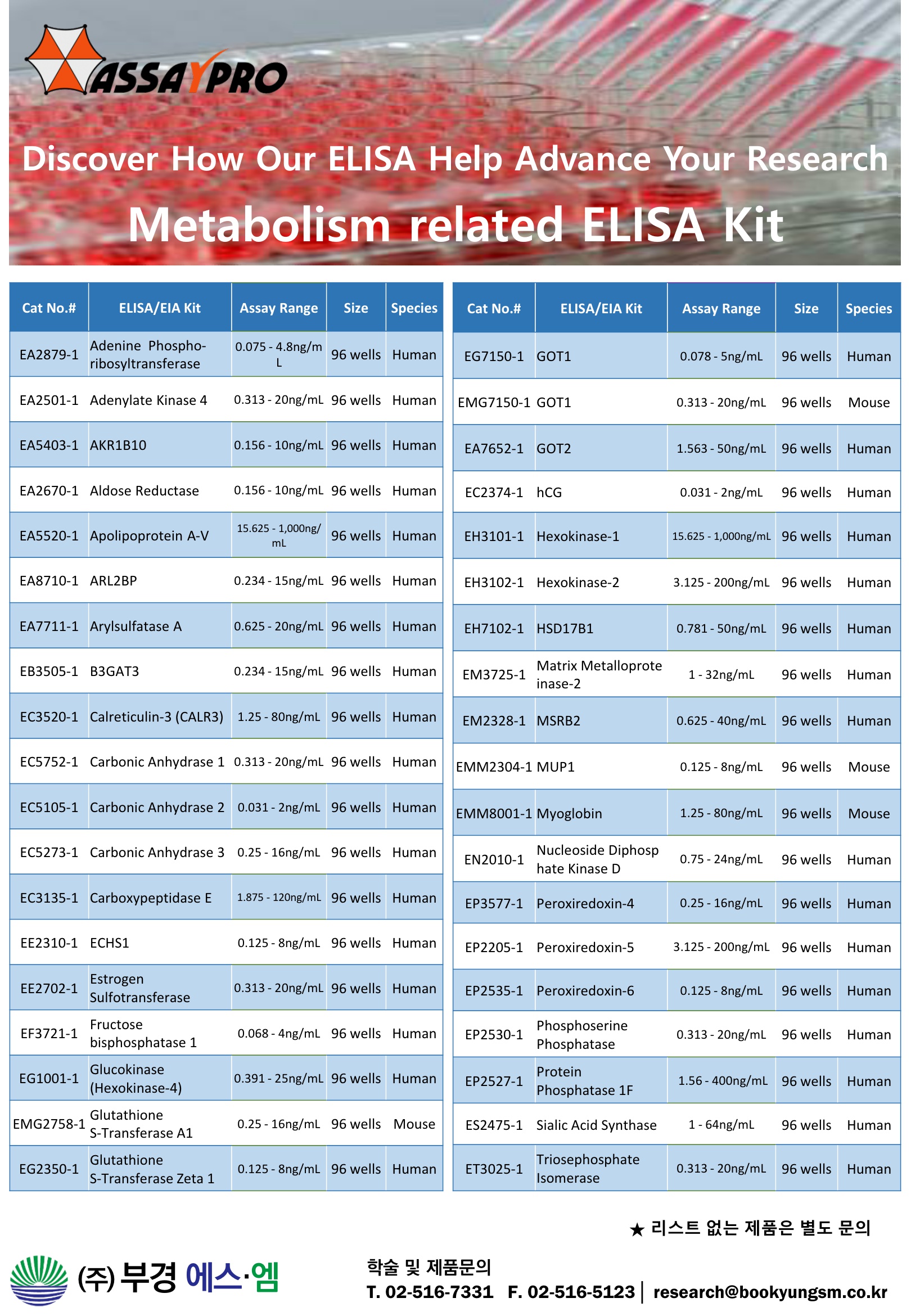 | Á¦¸ñ | [AssayPro] Metabolism related ELISA Kit | |||||