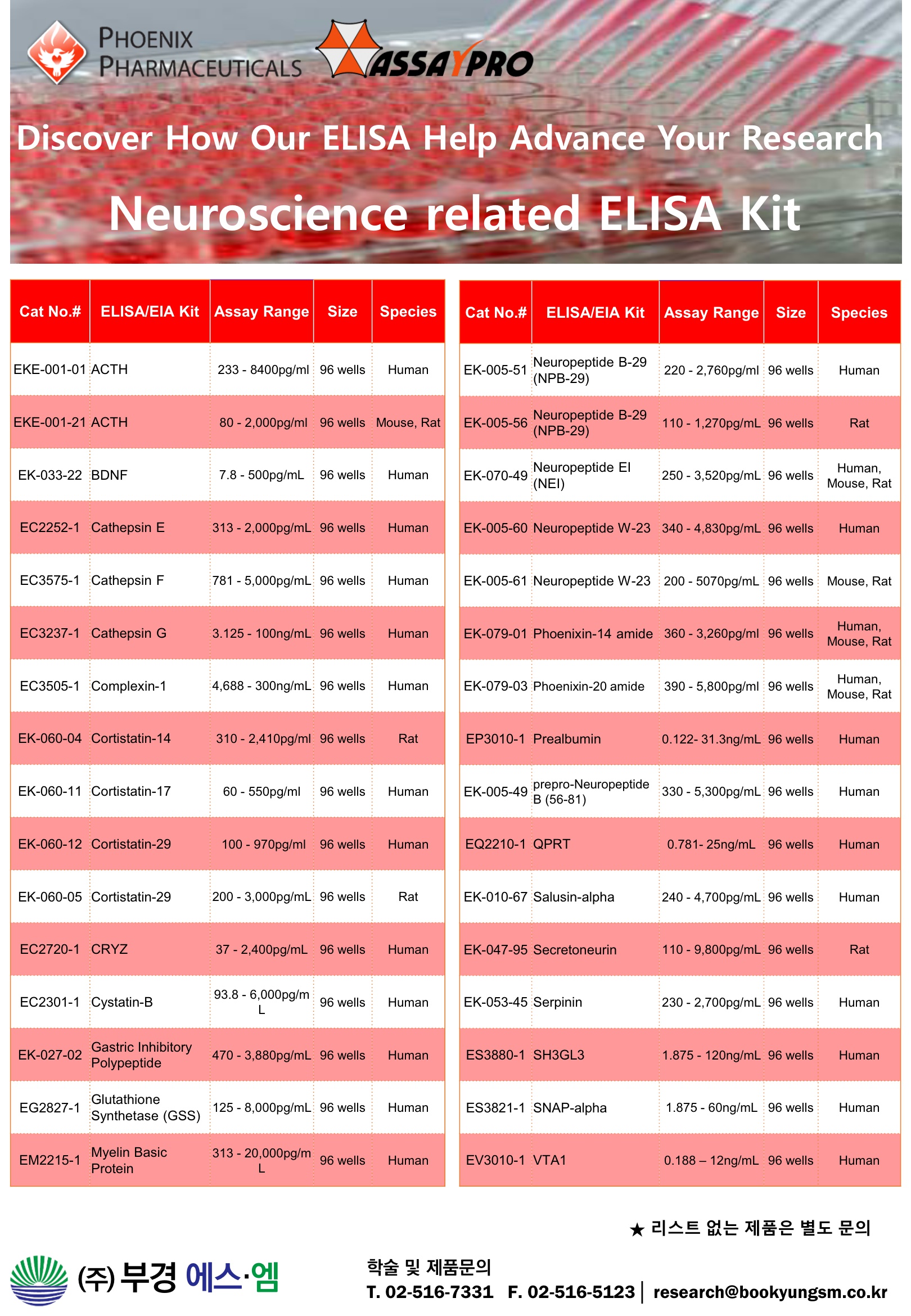 | Á¦¸ñ | [Phoneix, AssayPro] Neuroscience related ELISA Kit | |||||